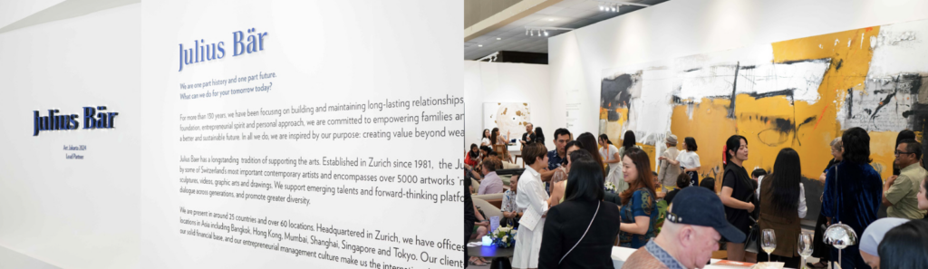 Maka, dengan dukungan empat Mitra Utama — Julius Baer, UOB Indonesia, Bibit & Stockbit, dan Treasury — Art Jakarta 2024 siap menjadi ajang yang tak terlewatkan, menyoroti beragam ekspresi artistik dan jiwa kreatif yang mewakili kancah seni rupa di kawasan ini. Yang Vi Sun, Indonesia Country Head and Group Head South East Asia at Julius Baer, menjelaskan, “Julius Baer memiliki tradisi panjang dalam dukungannya terhadap seni rupa. Kami percaya bahwa seni rupa mendorong pola pikir yang terbuka dan memantik percakapan sehingga kami terus memelihara komitmen kuat untuk mendukung upaya artistik di seluruh dunia. Tahun ini, seniman terkemuka Indonesia, Sunaryo, menyajikan pameran istimewa yang mencakup karya-karya terbarunya di Julius Baer VIP Lounge. Dengan pendekatan yang cergas terhadap seni kontemporer dan mendorong batas- batas ekspresi seni, karya-karya Sunaryo sangat beresonansi dengan budaya Indonesia.”