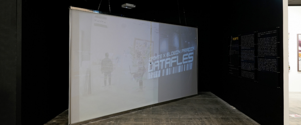 iForte berkolaborasi dengan seniman berbakat Eldwin Pradipta untuk menciptakan “DataFlesh”, proyeksi interaktif dari material semi-transparan yang akan bereaksi secara visual terhadap gerakan pemirsa di kedua sisi, memanfaatkan grafis berbasis data yang menyimbolkan aliran informasi yang menghubungkan daerah-daerah di nusantara.